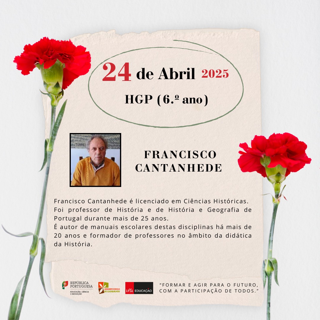 No decorrer das comemorações do 51.º aniversário do dia 25 de Abril de 1974, decorreu no dia 24 de Abril, na Escola Básica Quinta Nova da Telha, uma palestra com o Professor Francisco Cantanhede, que partilhou alguns momentos da vivência em ditadura e em liberdade. Nas três sessões, dinamizadas no âmbito da disciplina de História e Geografia de Portugal, participaram todas as turmas do 6.º ano de escolaridade. Esta atividade foi bastante apreciada pelos alunos, que escutaram um testemunho real da História, tendo ainda a oportunidade de partilhar vivências contadas por familiares, como os seus avós.