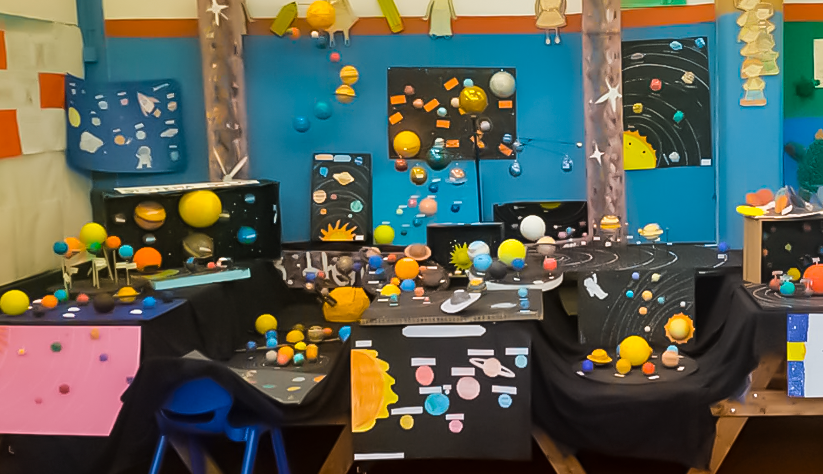 É com enorme entusiasmo que apresentamos esta exposição dedicada ao Sistema Solar, composta por trabalhos criativos e informativos realizados pelos alunos do 4.º ano. Ao longo das últimas semanas, os nossos pequenos exploradores mergulharam no fascinante universo dos planetas, luas, estrelas e muito mais, transformando o conhecimento em expressões artísticas e científicas surpreendentes.